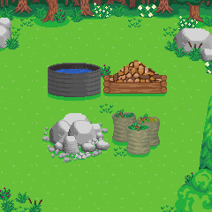- Resource Composition: Communities have four types of terrain, each of which produce a different resource. Pasturelands produce GRASS; Quarries produce STONE; Forests produce WOOD; and Lakes produce WATER. The daily production rate for each Resource is firstly dependent on the composition of the underlying Lands